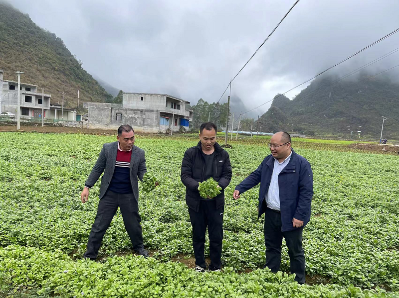 公司黨員現場了解餐甲村蔬菜種植示范基地情況