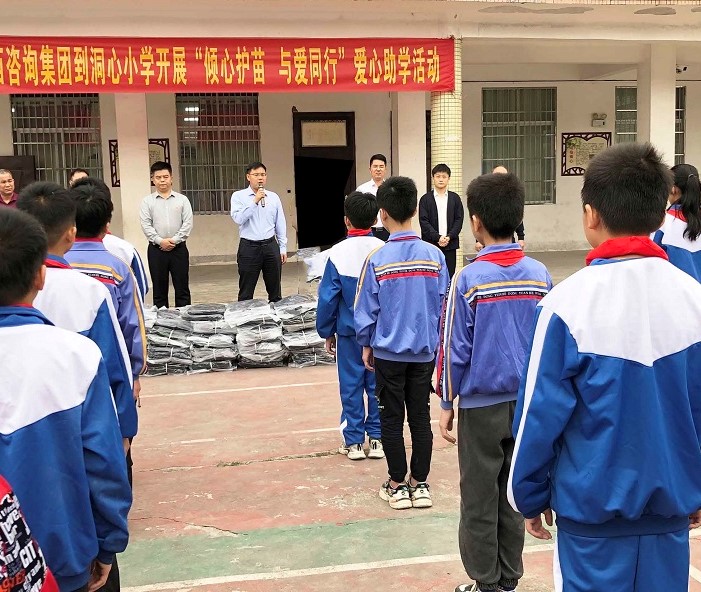4月14日,廣西工程咨詢集團有限公司到陸川縣溫泉鎮洞心小學開展“傾心護苗 與愛同行”愛心助學志愿服務活動。自治區黨委辦公廳國安處處長、洞心村第一書記蔣士圳,陸川縣人大常委會副主任王秀輝,公司副總經理姚遠,溫泉鎮人民政府鎮長陳東出席活動。溫泉鎮中心小學校長朱偉雄主持活動。